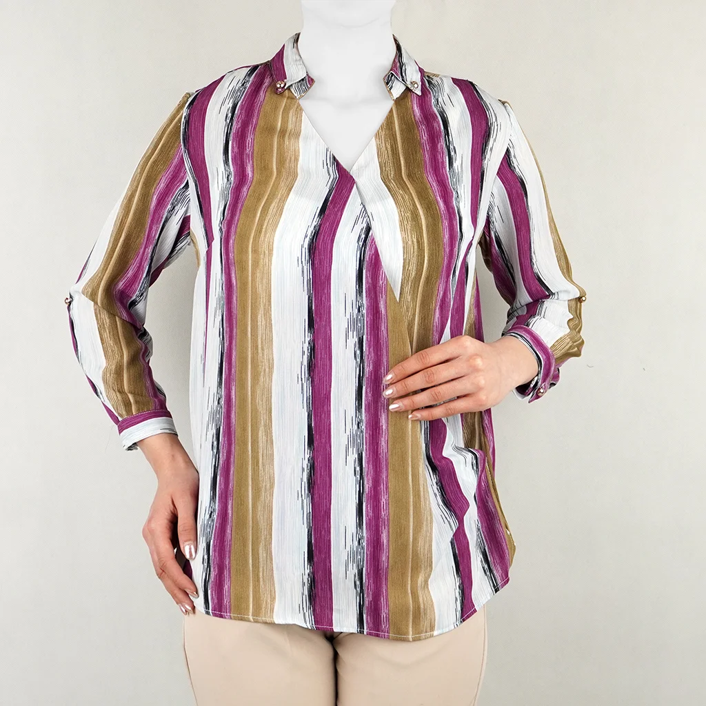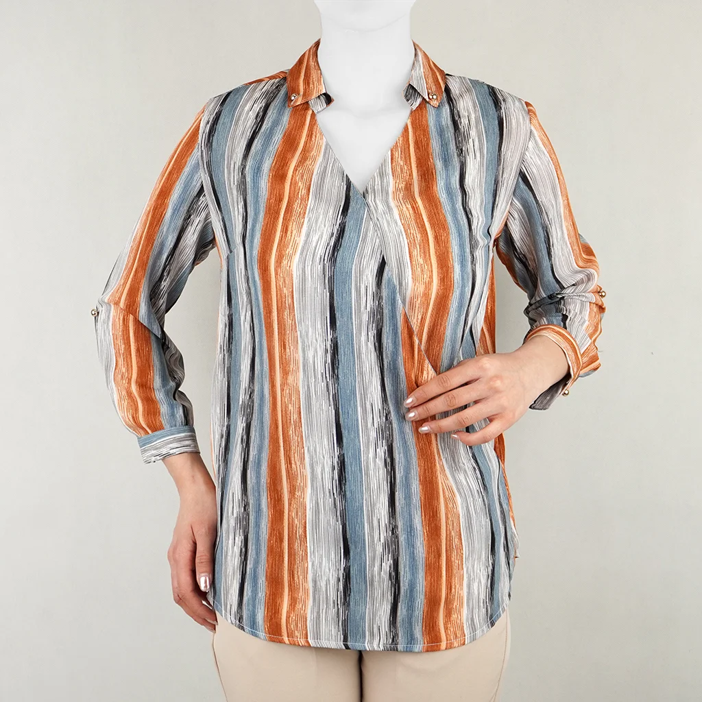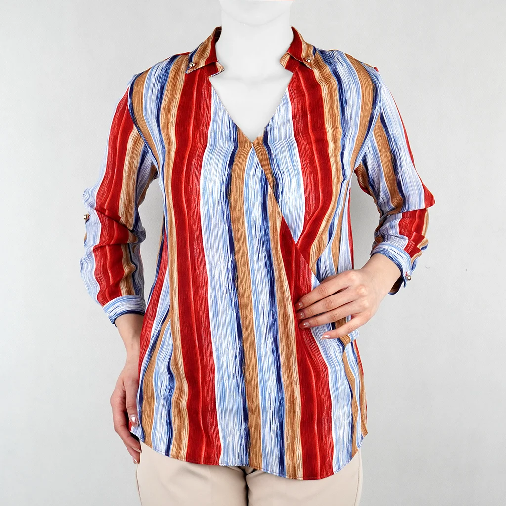 شومیز زنانه آبرنگی نیزل یقه برگردان